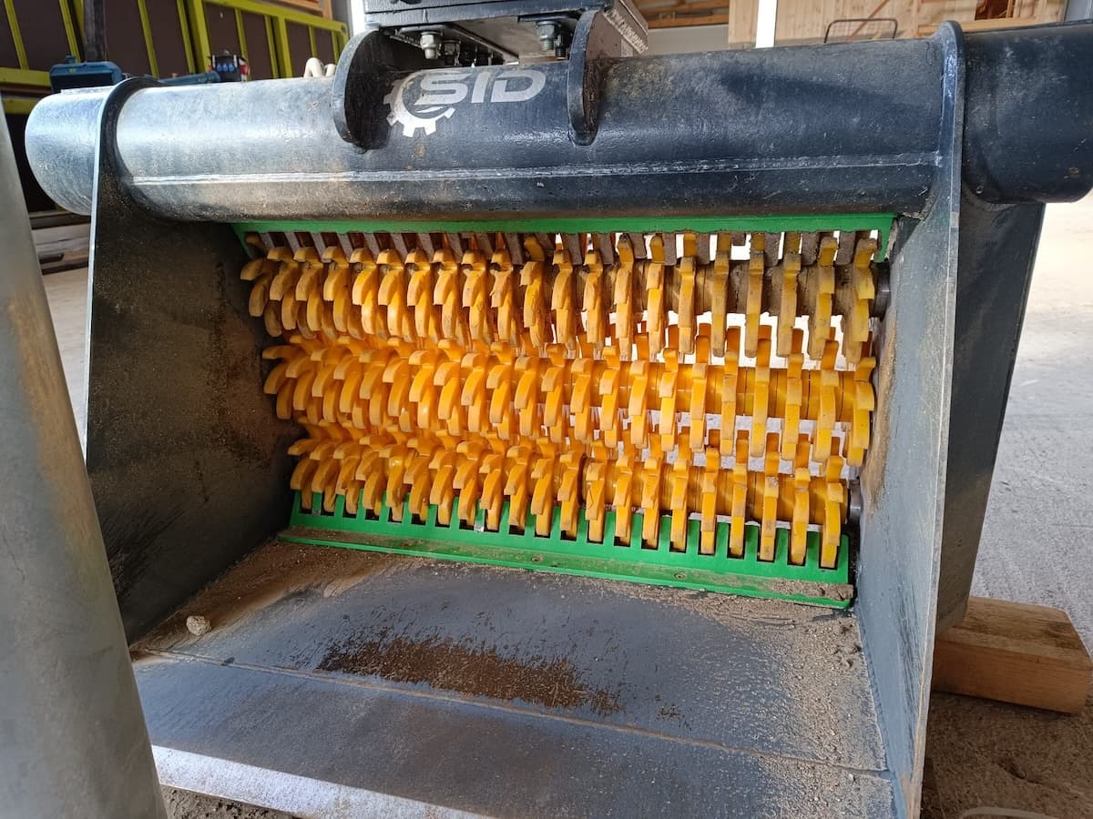 Die im Schaufel montierten Polyurethansterne drehen sich in die gleiche Richtung, was die Trennung des Rohmaterials ermöglicht. Der Siebschaufel hat Scheiben aus weichem Material, wodurch er Materialien wie Torf oder Wurzeln schont. Das Gerät trennt das gemischte Material genau und blockiert nicht das in der Schaufel verbleibende Material . Die Siebschaufel kann an Bagger, Traktoren, Teleskoplader, Kompaktlader, Rad- oder Raupenlader und Minilader montiert werden